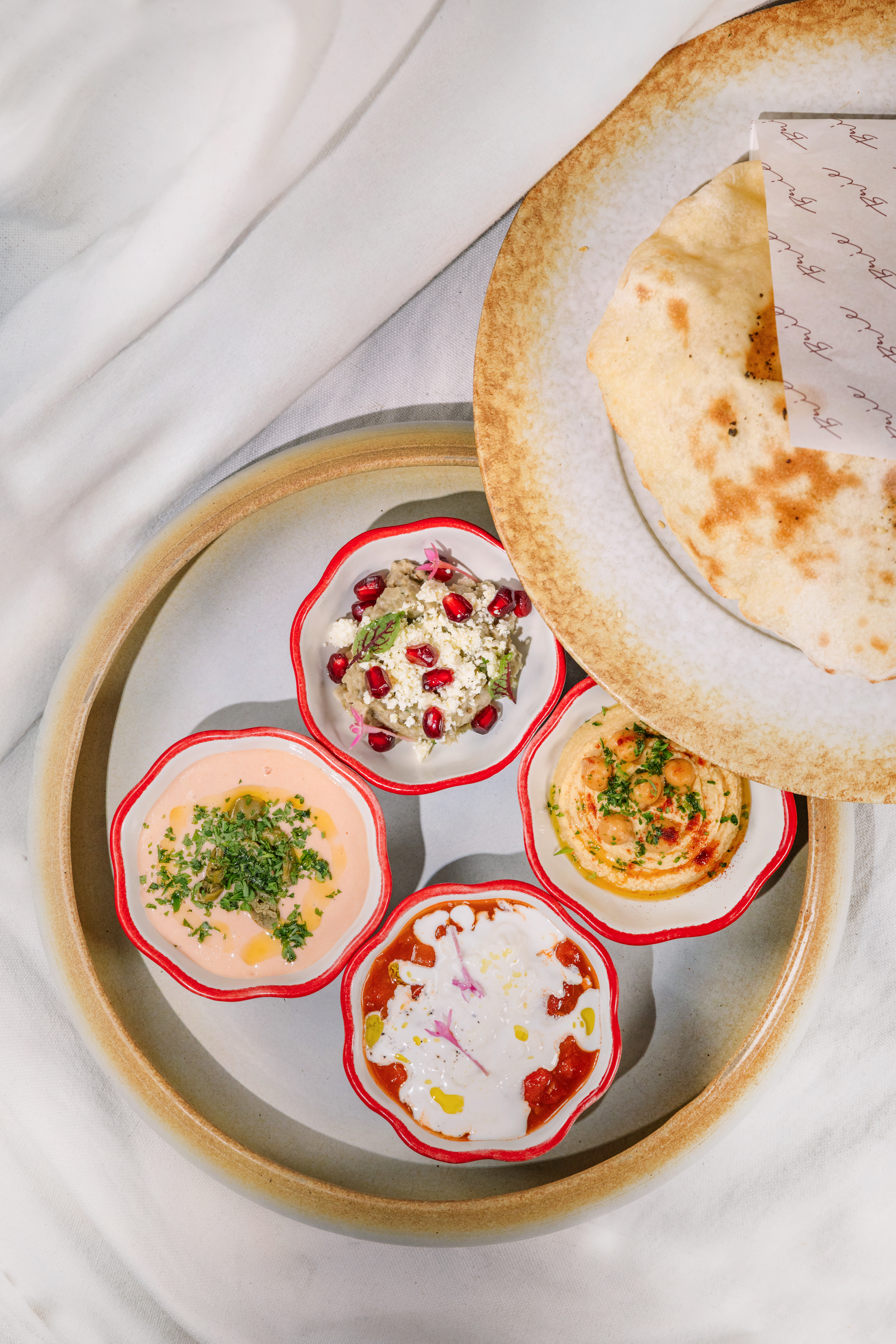 Eggplant on Charcoal with Tomato Salsa, Feta & Pita Bread
